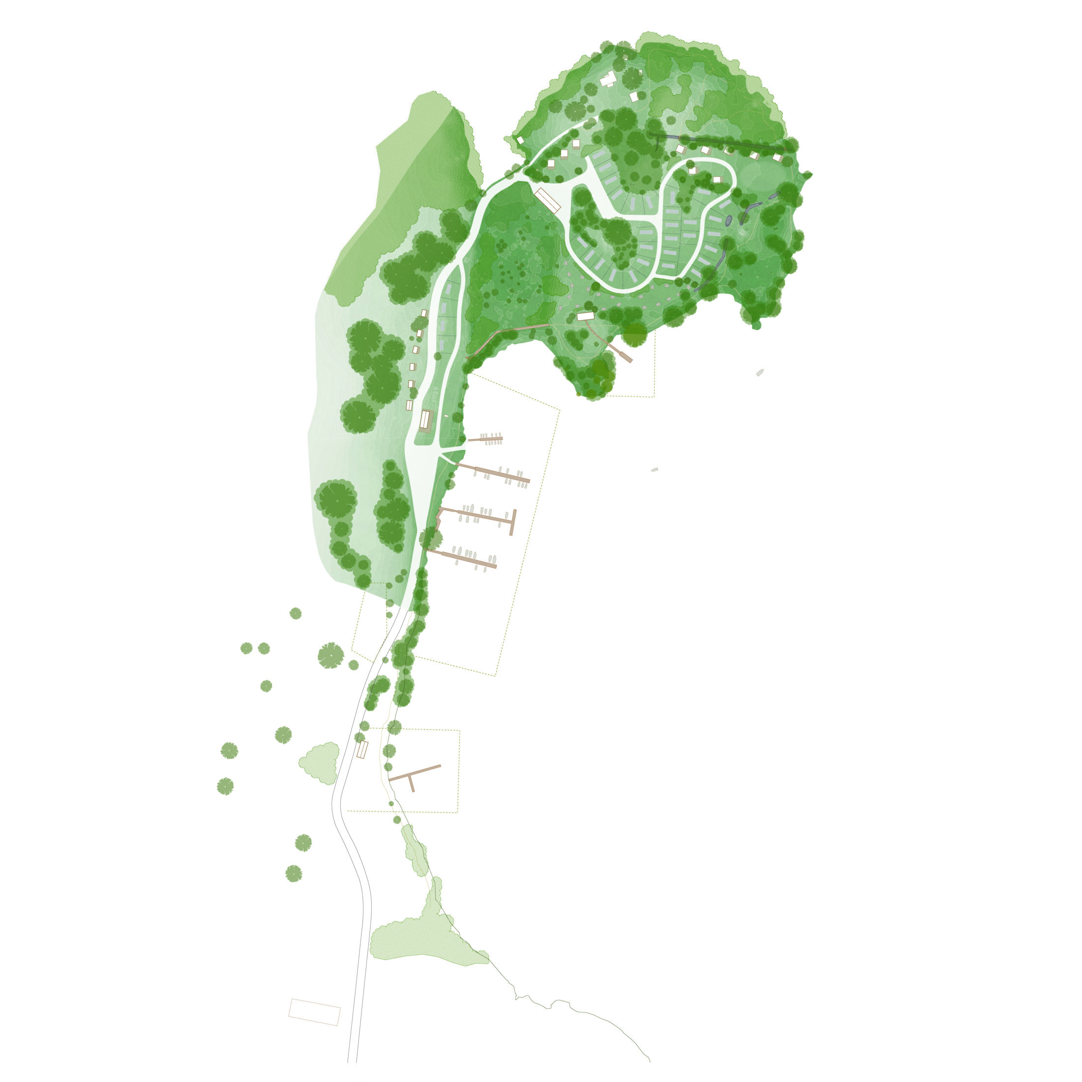 Nyréns har på uppdrag åt Södertälje kommun tagit fram ett förslag på hur Lotsudden, Slussholmens sydliga spets, kan bli en målpunkt i den nya stadsparken och hur en restaurang- eller caféverksamhet kan inrymmas i de befintliga verkstadsladorna.
