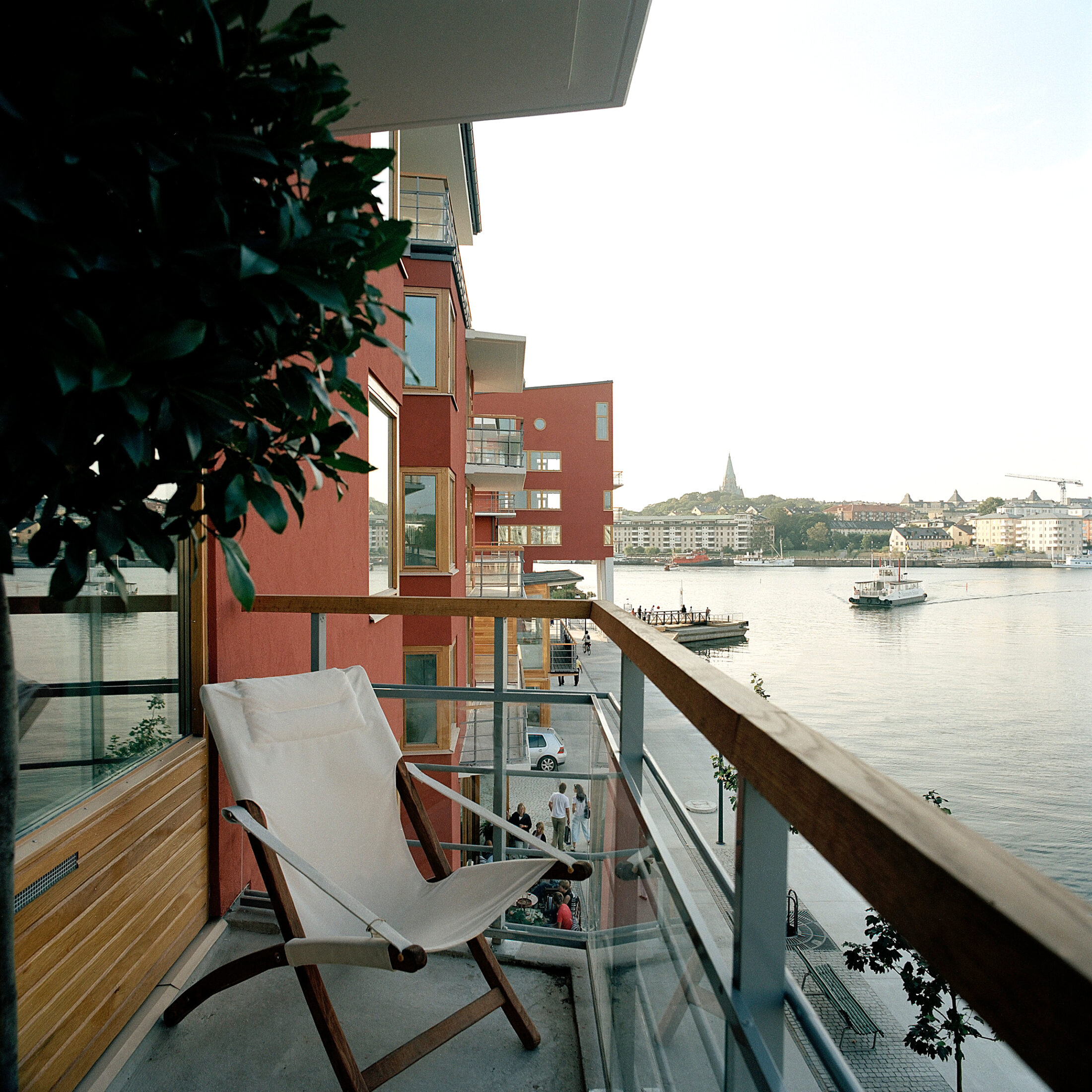 Mellan de två bostadshusen ligger kvartersgården, något upphöjt från kajen. En restaurangpaviljong och en klematispergola avgränsar gårdsrummet mot sjön. Gårdens centrala plats är den nedsänkta gräsmattan och den generösa sandlådan med bakbord av sten och trä. En lund med flerstammiga lönnar skapar lummighet. Ett välvt cykelskärmtak sluter gården mot Sickla Kanalpark. Trapphusen nås genom patiogårdar men vattenspel och vårdträd.