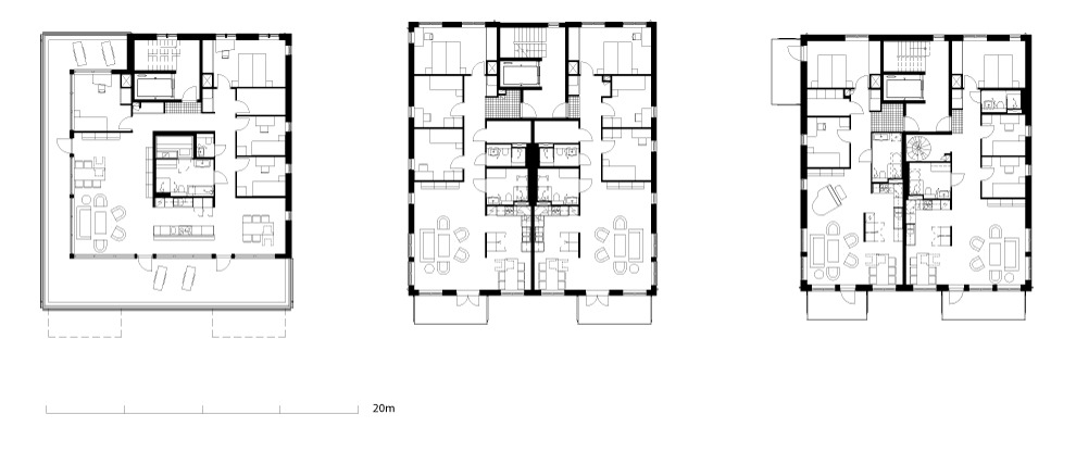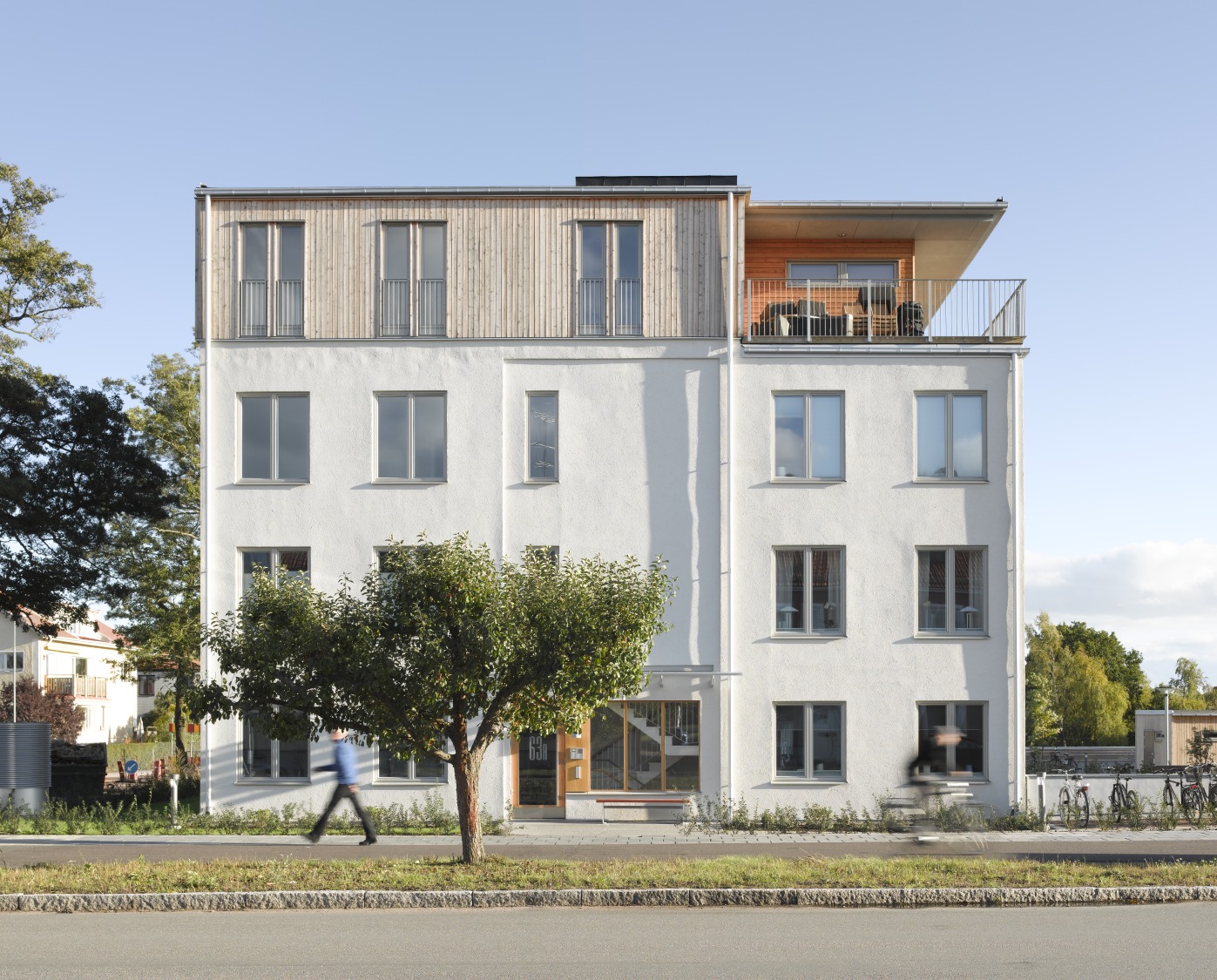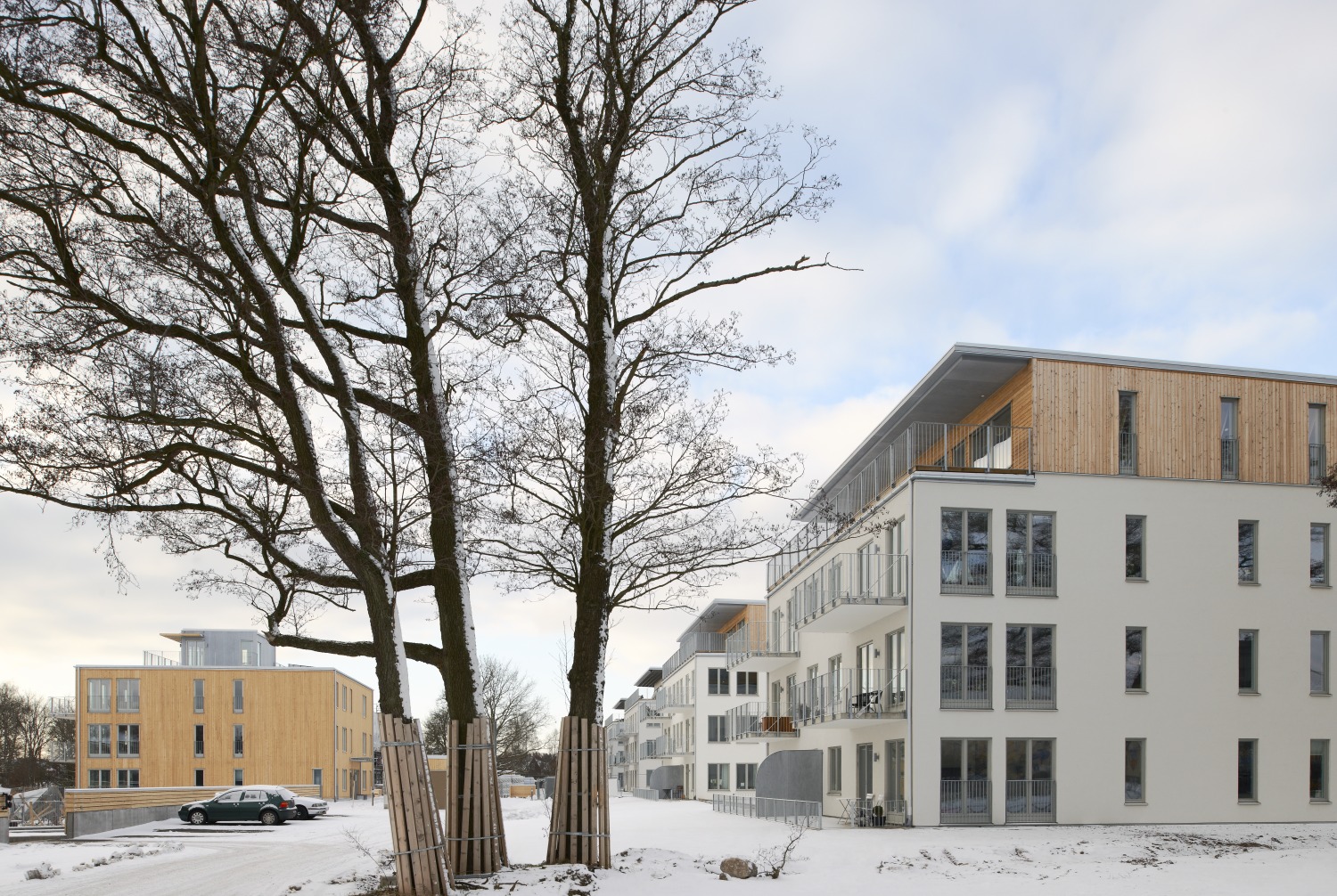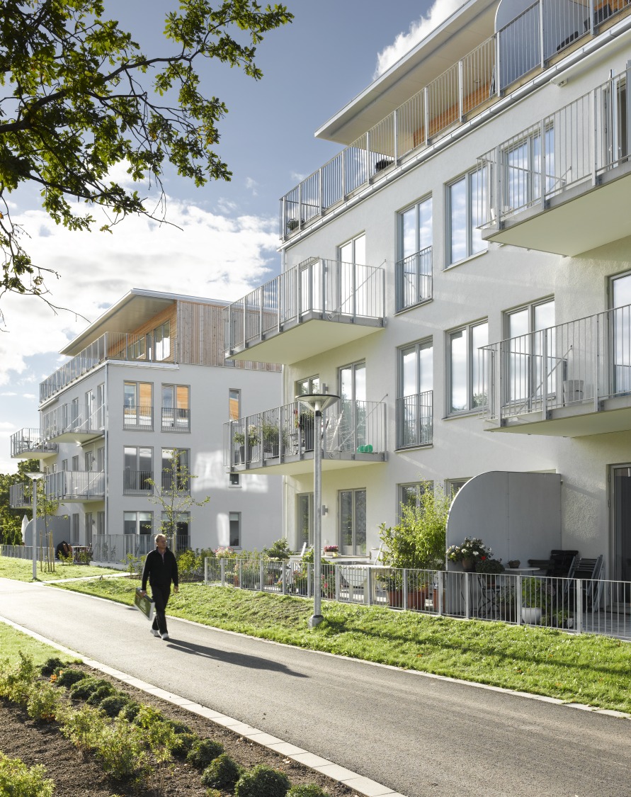 Kommunen var tydlig med särskilda förväntningar på anpassning av bebyggelsen dels till närliggande villaområde men också i syfte att utveckla och tillgängliggöra naturmarken för allmänheten. Funktionalistiska flerfamiljshus utmed Stensövägen och Kalmarsundsparkens solitärvillor blev då en utgångspunkt. I stället för burspråk riktade mot utsikten planerades hela, enkla volymer i något förskjutna rader.  Det i planskedet tänkta lägenhetsprogrammet med två hustyper breddades väsentligt vid genomförandet och bidrar nu till den variation en mycket kreativ dialog med kommunen tillskapat.